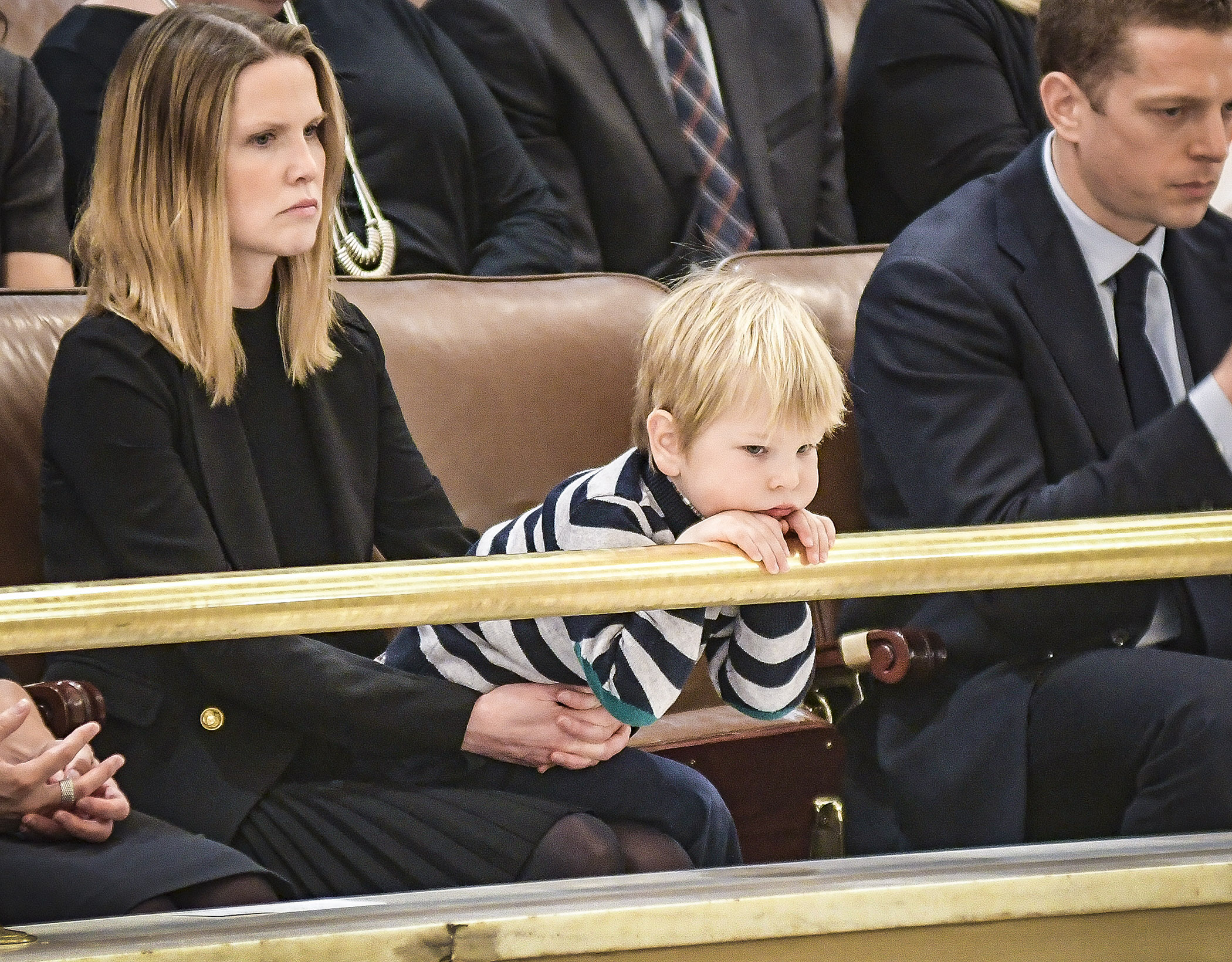 Gov. Mark Dayton's grandson, Hugo, listens from the gallery as his grandfather delivers the State of the State address. Photo by Andrew VonBankTaxes fuel state investments, which in turn fuel a better economy, he said.
