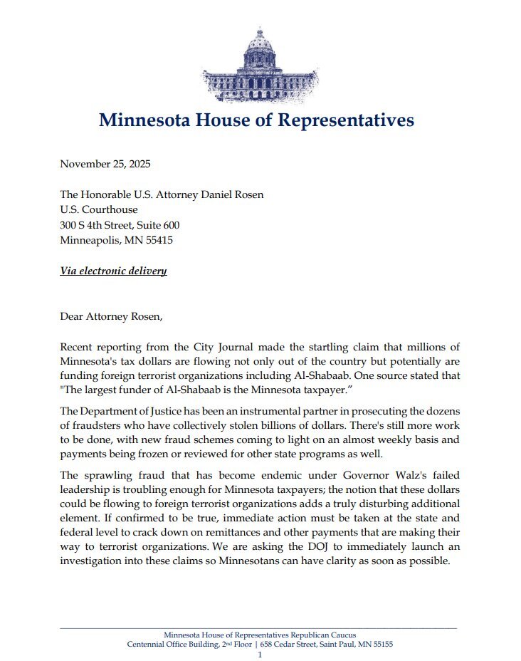 If you'd like to contact Rep. Dippel, please do NOT reply to this email. Rep. Dippel can be reached at rep.tom.dippel@house.mn.gov Hello from the State Capitol, Minnesota budget officials recently unveiled the latest economic forecast. While it’s good that we won’t be forced to cut spending for the remainder of this budget cycle, in the next budget cycle we are expected to see a $3 billion budget deficit. It cannot be denied that if Governor Walz and the previous Democrat-led legislature hadn’t wasted a $19 billion surplus and grown state government spending by 40%, we would not be facing these future economic problems. Common sense says if you wouldn’t have spent all the surplus, and you would have kept government growth to a percentage in the single digits, we would not be facing a future deficit. Last session the legislature reduced state spending – thanks to another deficit alert – but it’s clear we didn’t go far enough. We now need to heed this warning and continue finding ways to reduce our state expenses next session. ADDRESSING RAMPANT FRAUD Not long ago, I signed on to a letter to U.S. Attorney Daniel Rosen to conduct an immediate investigation into allegations of fraud under Governor Tim Walz. A recent report stated that Minnesota taxpayer dollars are being sent overseas to fund terrorist organizations. A source quoted stated, "The largest funder of Al-Shabaab is the Minnesota taxpayer.”  One of the ways we could have stopped this fraud was to approve the creation of a new state watchdog agency, an independent Office of Inspector General. The bill was approved in the Senate, but with a statistical tie in the Minnesota House between Republicans and Democrats, not one Democrat would vote to move this legislation forward. I did vote in favor the bill and strongly support the creation of this office. We have lost billions of dollars – that we know of – to fraud due to the Walz administration’s decision not to take the problem seriously, and many legislative Democrats refusing to address it. To me, this legislation is Priority #1 in the 2026 session. AGRICULTURE AND THE MINNESOTA FARM BUREAU FEDERATION As a member of the Minnesota Farm Bureau Federation, I’m always pleased to see good things happening within the organization. Not long ago, it held its annual meeting.  Agriculture is the backbone of Minnesota’s economy, and this session the MFBF plans work with lawmakers on four priority areas to support the vitality of farmers, ranchers and rural communities: family farm legacy; rural economic vitality; environmental stewardship; and energy and farmland preservation. I strongly support their mission. LOCAL VISITS Loved being out and about enjoying the Christmas and holiday season with our community! From the tree lighting ceremonies in Cottage Grove and Lake Elmo, to the Christkindlmarkt at the Gasthaus, and a visit to the Afton Holiday Village — it’s been wonderful celebrating the traditions that make this time of year so special. Grateful for our neighbors, small businesses, and the joy that fills our towns this season.  Recently, I had the opportunity to tour Basic Needs, Inc., an organization dedicated to supporting our neighbors by ensuring everyone has access to fresh food. The important work they do every day uplifts those who face hardship and makes our community stronger.  Not long ago I also spoke at the Red Ribbon Week event with the Devin J. Noring Foundation.  Minnesota has become a major hub for drug trafficking, and meth and fentanyl are taking too many young lives. Together, we can take action, support prevention, and build a safer future for our kids. The United Heroes League held their grand opening recently. Their team is doing incredible work to support our veterans and their families, and I’m grateful for the meaningful impact they make in our community. This year, they’re hosting Hockey Day Minnesota—a major event expected to bring nearly 100,000 visitors over eight days.  I also had the opportunity to attend a local Q&A event on modular and mobile home parks.  These communities are facing rising costs, and it’s important we listen, learn, and work together to find real solutions that protect long-term affordability. A recent fire safety demonstration in Cottage Grove was a powerful reminder of the incredible work our firefighters do to protect our communities. I’m committed to supporting policies that protect families, strengthen emergency response, and ensure our firefighters and local communities have the tools they need to stay safe.  I also had a great tour of the Woodbury Leadership Academy.  This school teaches over 1,200 students, including many from Cottage Grove, Denmark Township, Lake Elmo, and beyond — and I’m proud that my nieces and nephew are among them. Strong schools build strong communities, and I’m grateful for the leadership shaping the next generation. Have a good weekend, Tom |