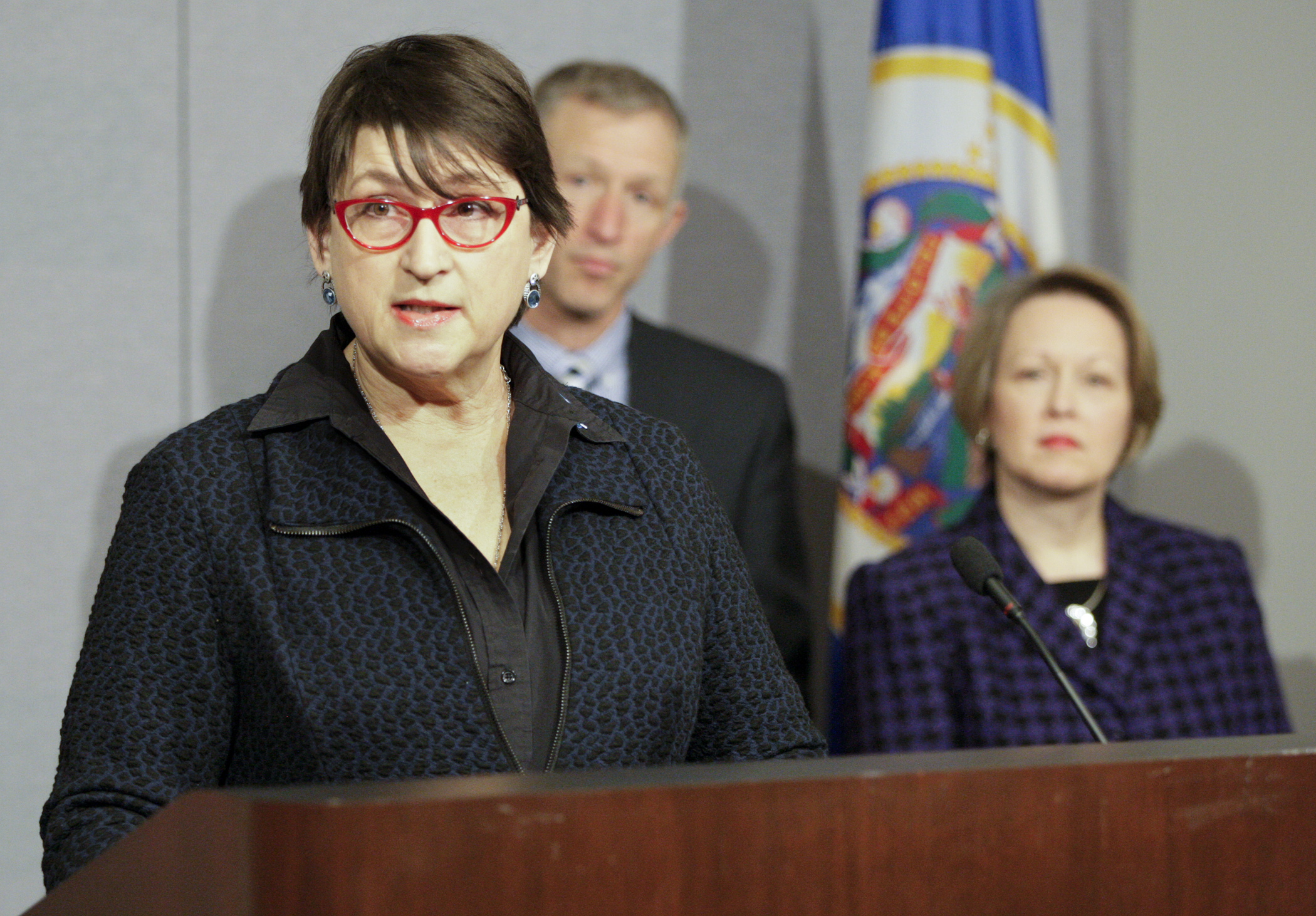 Tamra Kramer, owner of Vom Fass at the Mall of America, explains at a Thursday news conference why she supports a bill to allow Sunday liquor sales. Bill sponsors Rep. Jenifer Loon and Sen. Roger Reinert are in the background. Photo by Paul BattagliaLoon said the measure has the support of House Speaker Kurt Daudt (R-Crown), and the governor has indicated his willingness to consider a bipartisan bill. “People know it’s just a matter of time when this is to happen, and the political landscape has changed.”